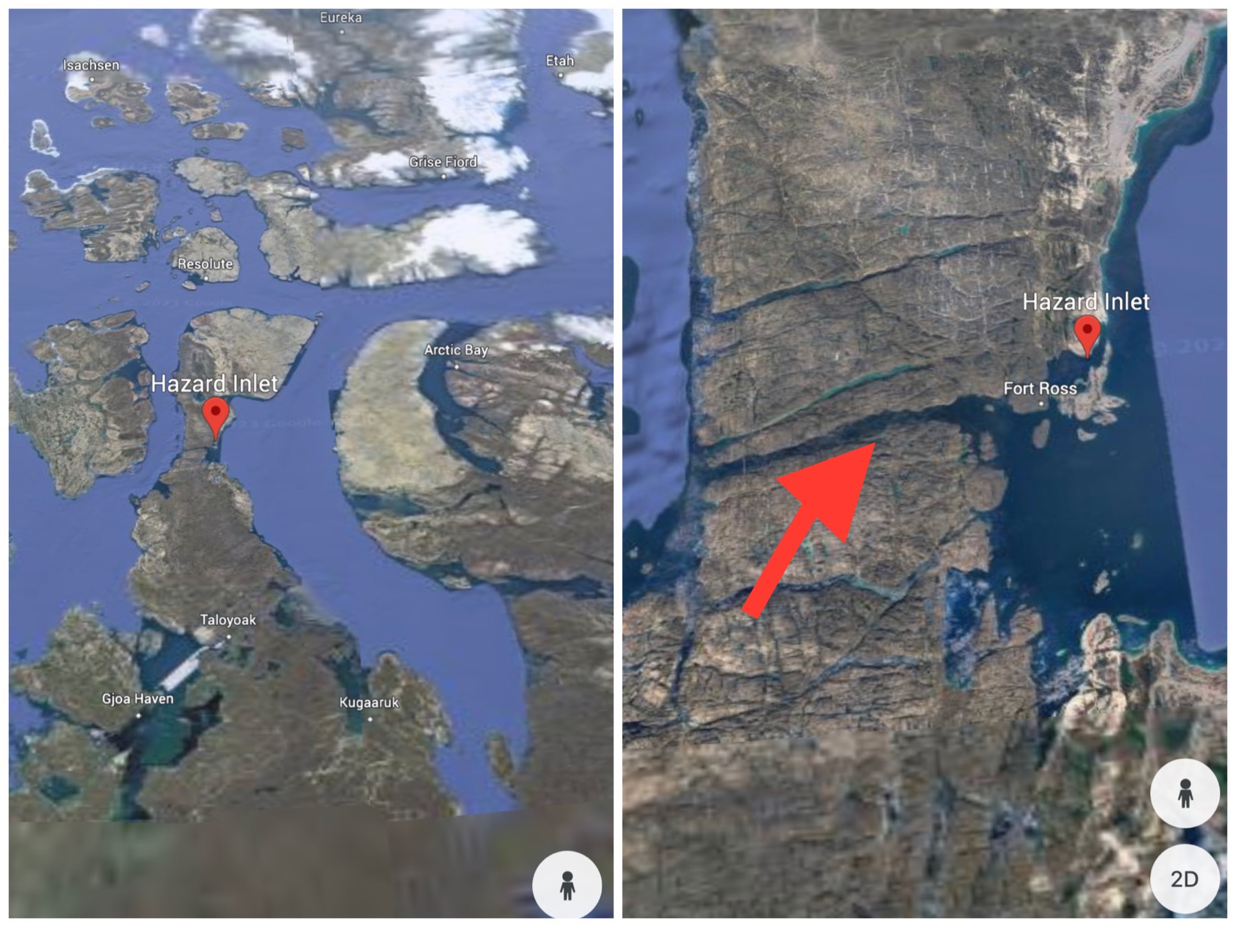 | The arrow points to Bellot Strait where we sailed this afternoon |
